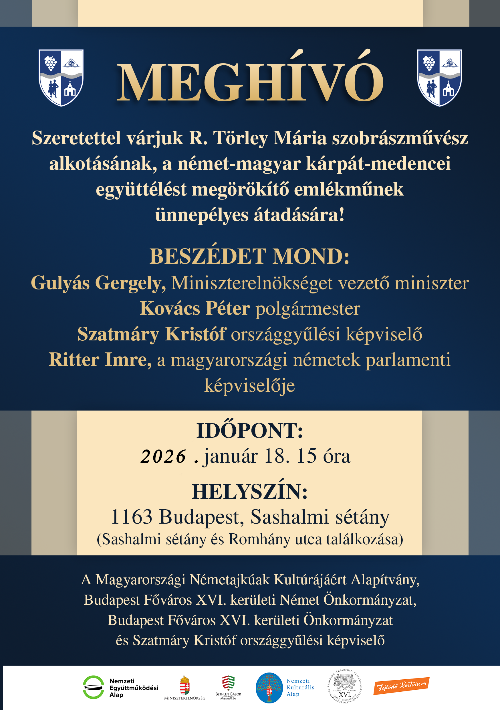 A Magyarországi Németajkúak Kultúrájáért Alapítvány és Budapest Főváros XVI. kerületi Önkormányzata és Szatmáry Kristóf országgyűlési képviselő